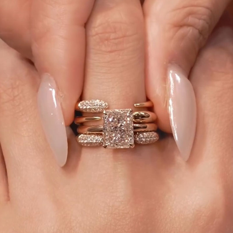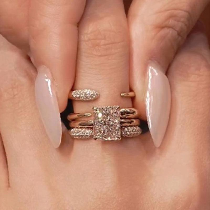 2 Pcs Radiant Cut With Hidden Halo Design Sterling Silver Ring Set