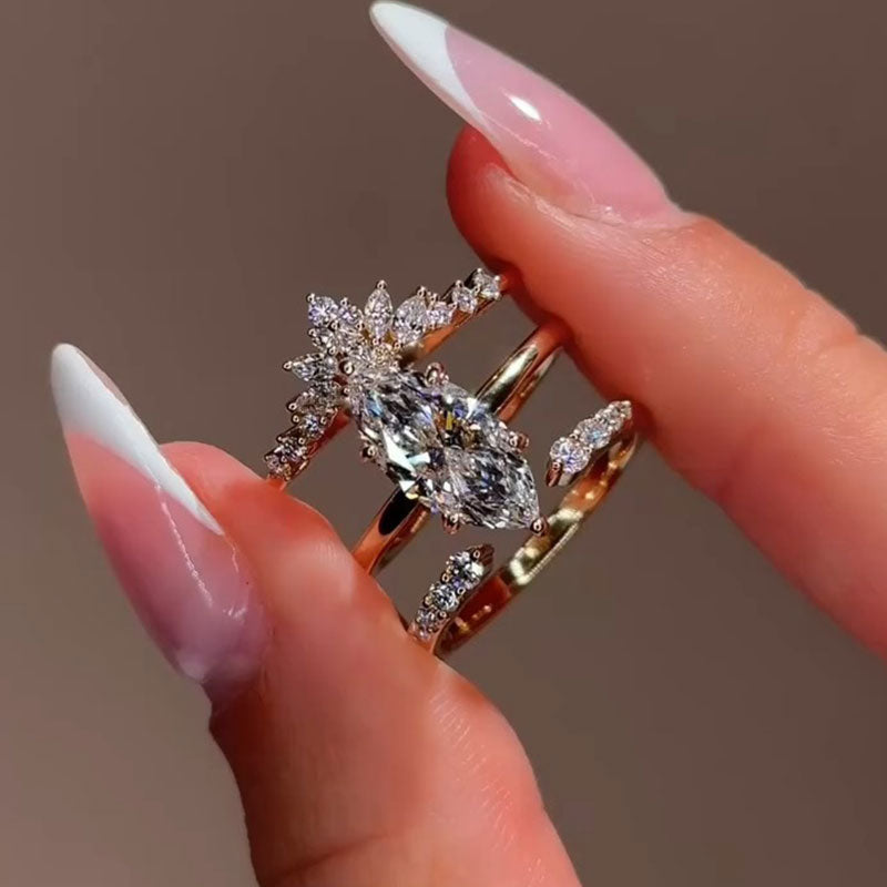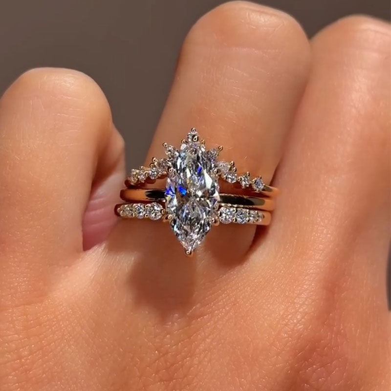 3 Pcs Marquise Cut Stack Sterling Silver Bridal Set