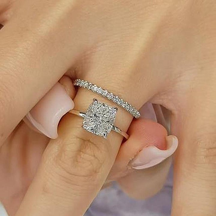 2PCS Double Halo Cushion Cut Bridal Set Ring in Sterling Silver