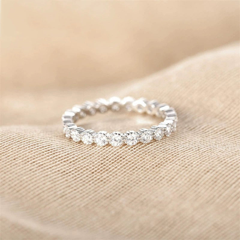 Eternity Round Cut Wedding Band In Sterling Silver